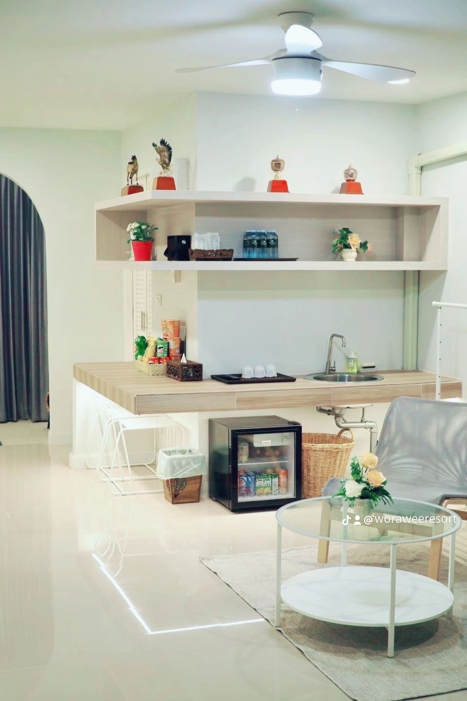 สไตล์โมเดิร์นสุดหรูตั้งอยู่ใกล้ริมน้ำที่สุด มีสระสปาจากุซี่ ส่วนตัวหน้าที่พักริมน้ำ 2 ชั้น 3 ห้องนอน 2 ห้องน้ำ 1 ห้องนั่งเล่น หน้าบ้านมีเคาเตอร์บาร์ ริมสระ มีโซนปาร์ตี้ปิ้งย่างทำอาหาร ราคาหลังละ 10,000 บาท (อาหารเช้า) พักได้ 6 ท่าน