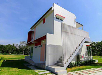 บ้านพัก 2 ชั้น สไตล์โมเดิร์น ภายในประกอบไปด้วย 3 ห้องนอน 3 ห้องน้ำ ภายในถูกตกแต่งอย่างเรียบง่าย แต่ให้ความรู้สึกหรูหรา ห้องน้ำมีฝักบัว 2 ขนาด สามารถเลือกใช้ได้ตามต้องการ