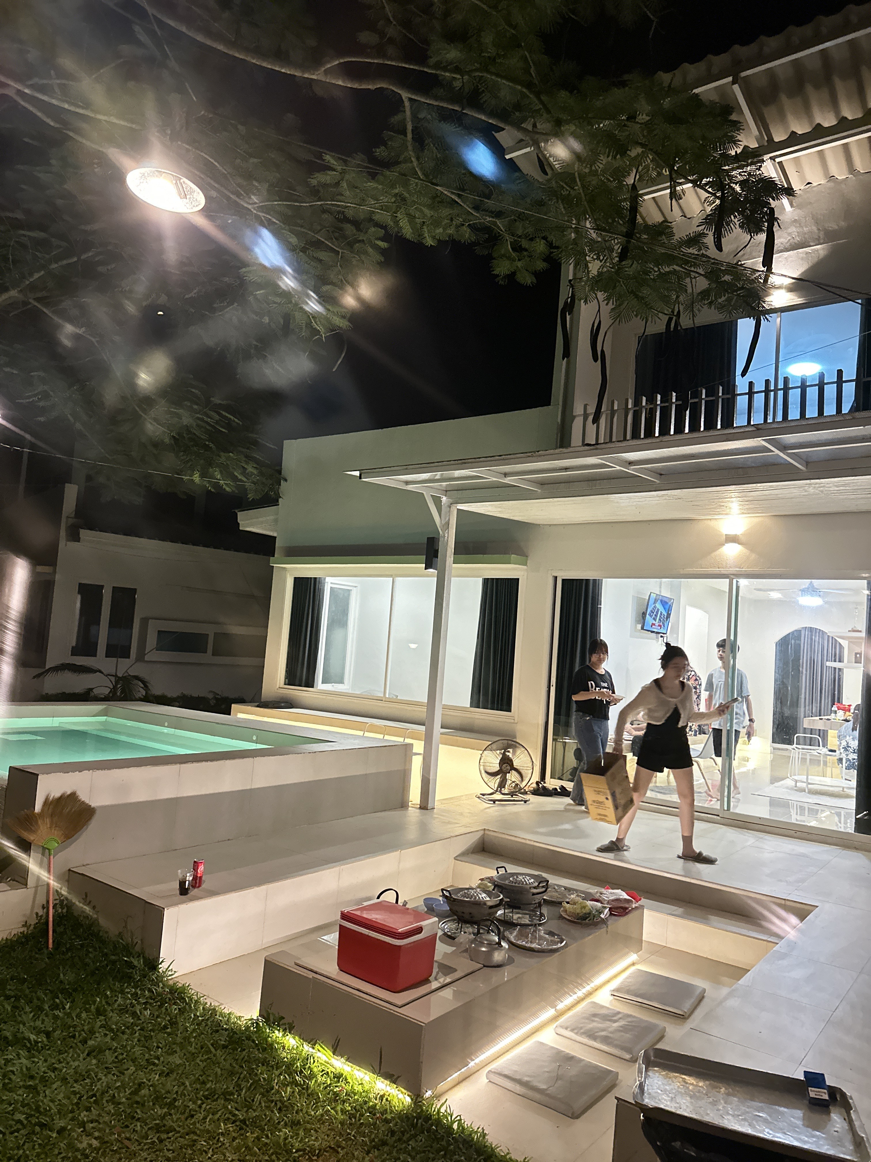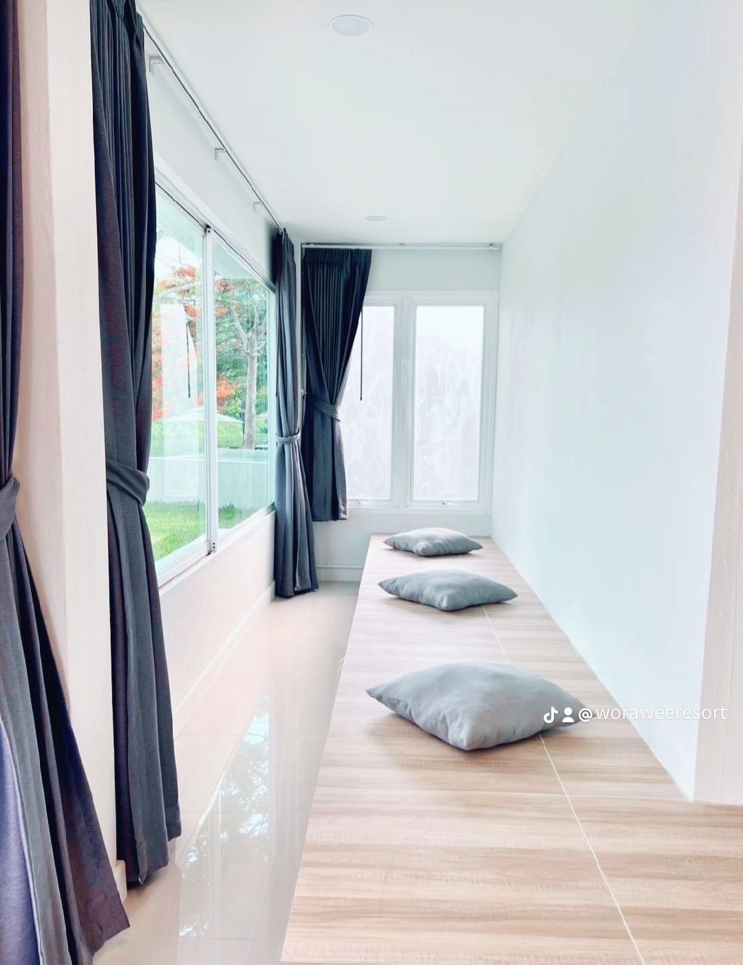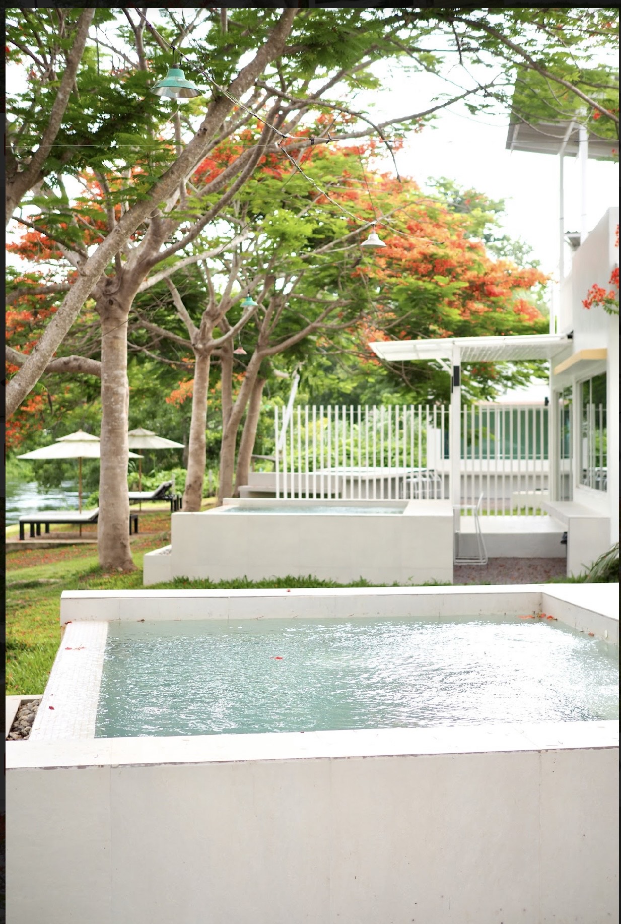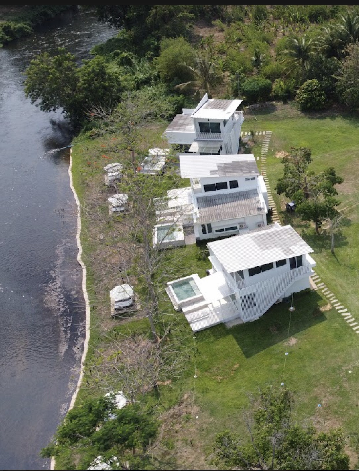 สไตล์โมเดิร์นสุดหรูตั้งอยู่ใกล้ริมน้ำที่สุด มีสระสปาจากุซี่ ส่วนตัวหน้าที่พักริมน้ำ 2 ชั้น 3 ห้องนอน 2 ห้องน้ำ 1 ห้องนั่งเล่น หน้าบ้านมีเคาเตอร์บาร์ ริมสระ มีโซนปาร์ตี้ปิ้งย่างทำอาหาร ราคาหลังละ 10,000 บาท (อาหารเช้า) พักได้ 6 ท่าน